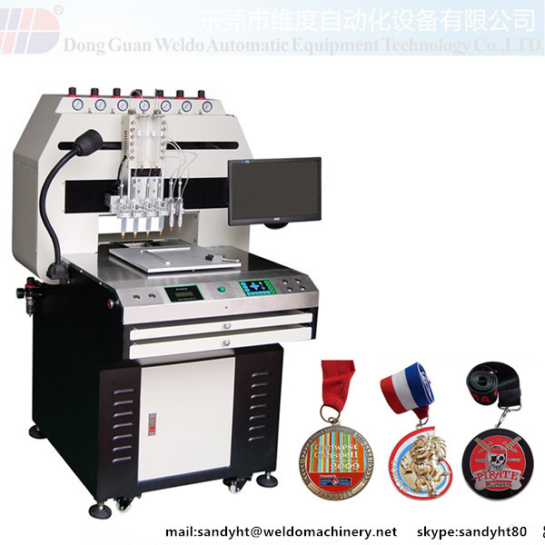 Weldo lapel pins coloring machine can inject the soft enamel orpaint in high quality,also widely usedin souvenir gifts ,metal industrial ,garment accessories ,advertisements,cars accessories, stationery fields ect.