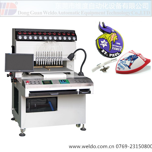 Weldo Soft PVC dispensing Machine for PVC bar Mat is to make soft PVC keychains, key caps,phone holders, cartoon USB drives, luggage tags, refrigerator magnets, photo frames , book marks , PVC bar mat ect. Our machine can be also produce plastic garment accessories such as PVC labels, silicone logos, zipper pullers ,hang tags ect.